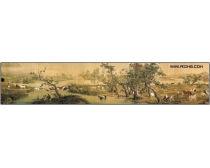 其次,从画面构图来看,《百骏图》也颇具匠心。画面以广阔的草原为背景,百匹骏马分布其中,既有群体感,又不失个体特色。画面中的骏马形态各异,有的悠闲漫步,有的奔腾跳跃,有的低头吃草,有的仰天长啸,形成了一幅生动的草原画卷。